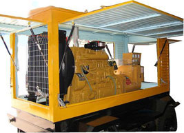 站前柴油发电机组/移动柴油发电机组设计独具创新,机动性高、重心低、制动安全、制造精良、外形美观。 站前拖车车架采用槽梁焊接成框架结构,节点选择合理、强度高、刚性好;同时装有钢板弹簧悬架结构;拖车采用高度可调节插销式牵引架,适用于各种高度牵引车;采用圆形钢管焊接直通式车轴,结构紧凑,安全可靠;车架四角设有机械式支撑装置,配备惯性行车制动、驻车制动和脱离应急制动,确保机组在各种状况下的安全;车架前端设有支撑轮,具备承受机组垂直载荷的功能的同时还具备导向功能;整车配备转向和刹车指示灯,同时装有尾灯标准插头